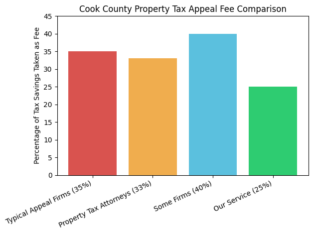 Understanding how these fee structures work can help Cook County homeowners keep more of their property tax savings.